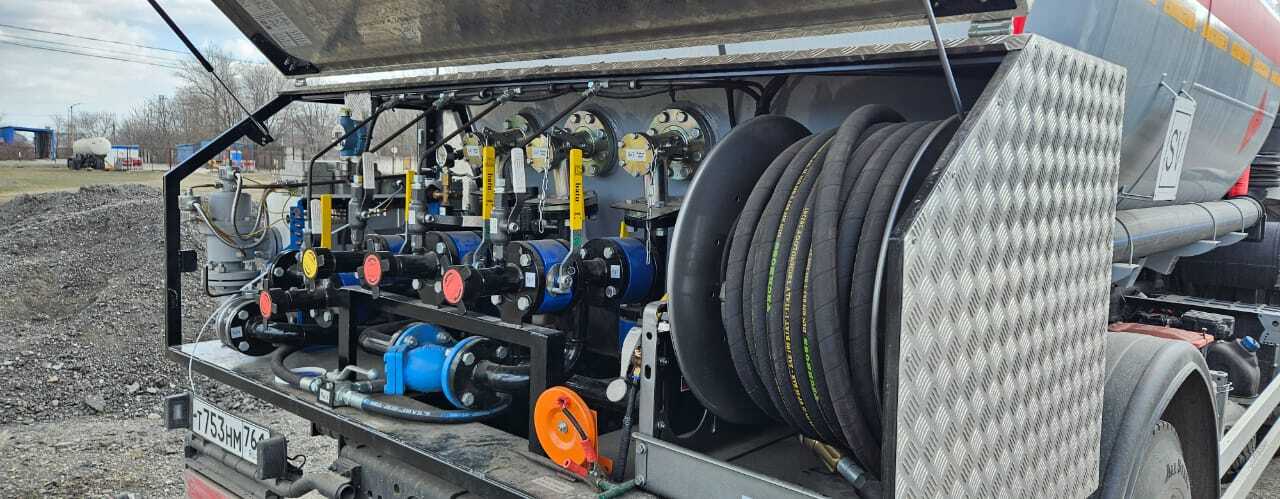 -оснащен автоматизированной установкой учета движения продукта по массе (кориолисовыми массомерами) как на слив так и на налив;